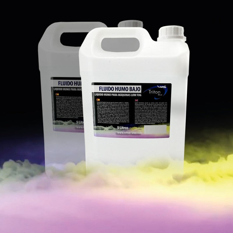 Neutral, odorless , water-based + glycol (propylene glycol) Low Fog fluid for low-smoke machines. 5 L bottle . Mixture not classified as hazardous according to 1999/45/EC and REACH (professional use). Effect: ground-level smoke layer with controlled dissipation. Use in ventilated areas; clean the floor after use if any film remains.