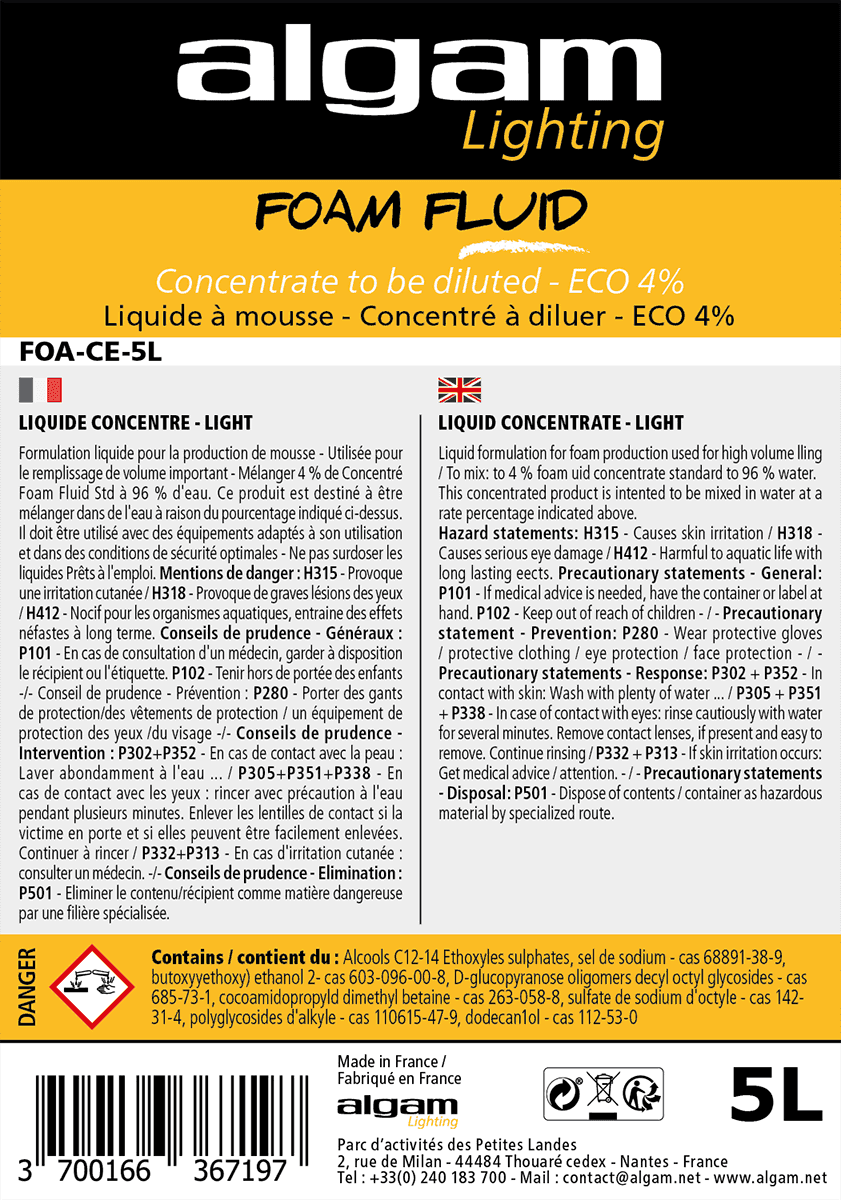 Algam FOA-CE-5L - 4% Eco Liquid for Foam Machines. 5L