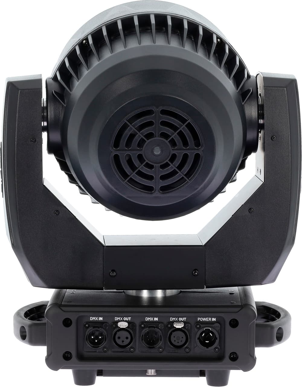 Wash zoom moving head with 19 x 15 W RGBW LEDs, 6°–50° zoom, PAN 540°/TILT 270°, linear dimmer, DMX modes (16/24 channels), 285 W power supply, PowerCon True1, active cooling, black plastic structure, weight 8.5 kg, IP20.