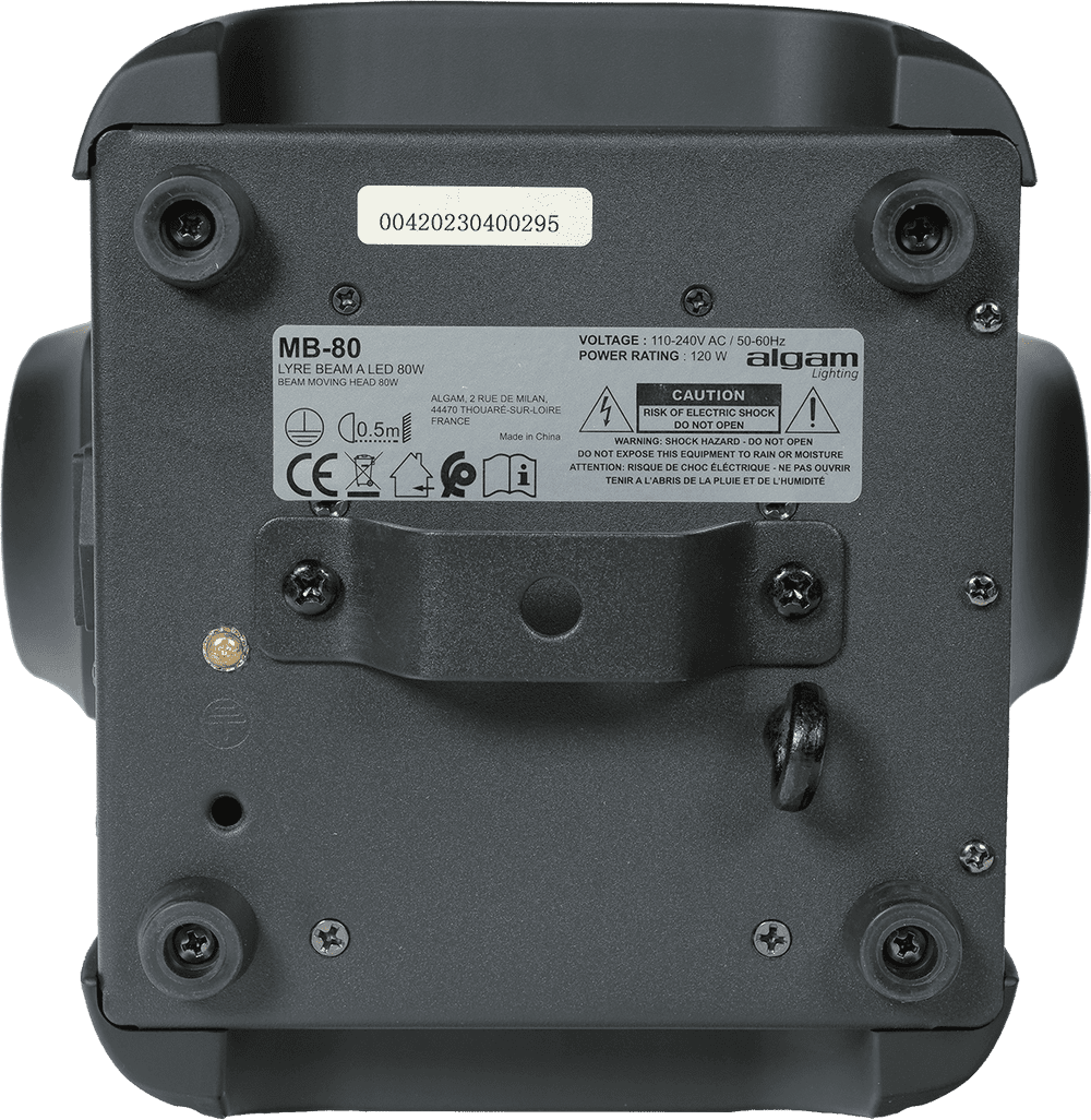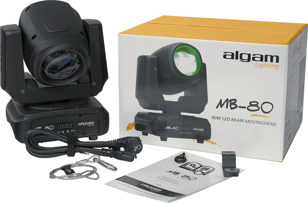 The Algam MB80 is an 80W white LED Beam moving head that combines a compact and lightweight design with professional performance. Equipped with a powerful, high-brightness white LED and an 8-color wheel with 12 interchangeable gobos, it offers visually striking rainbow, smoke, and strobe effects. Its silent motor allows for panning movements of up to 540° and tilting 230°, while 11- or 13-channel DMX control, automatic, music-driven, and master/slave modes, ensure perfect integration into nightclubs, theaters, concerts, and corporate events.