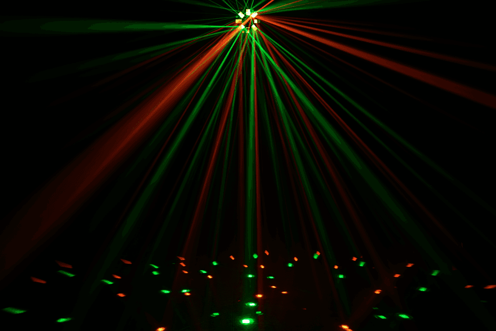 - Light sources:* Derby effect: 5 x 3W RGBWA LEDs* Strobe or wash effect: 8 x 3W RGBW LEDs* Laser effect: Green 50mW and Red 100mW- Class 3B laser with safety key and interlock connector- Modes: Auto, Musical, Master/Slave and DMX- Number of DMX channels: 9- DMX in/out: 3-pin XLR- Display: Digital display with 4 control buttons- Chassis: Steel- Power supply: 100-240V 50/60 Hz- Consumption: 66 W- Weight and dimensions: 2.2 kg, 420 x 220 x 180 mm- Protection class: IP20 (indoor use)- Delivered with power cable and velcro strap, hanging sling and safety sling