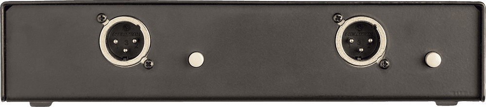 • Conectividad Completa: Cada canal cuenta con una entrada Jack de 6.35 mm, una salida paralela Thru para conectar a un amplificador en el escenario, y una salida XLR balanceada para la conexión a la mesa de mezclas.