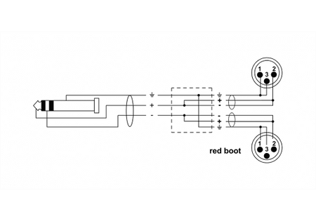 Cable adaptador en formato Y de 1 metro de longitud con un conector mini-jack macho estéreo de 3.5 mm a dos conectores XLR macho de 3 pines. El cable cuenta con una sección de conductor de 0.14 mm², fabricado con cobre libre de oxígeno. Dispone de un apantallamiento en espiral de cobre desnudo y una cubierta exterior de PVC flexible. Los conectores son moldeados para garantizar una mayor durabilidad y protección contra la tensión mecánica.