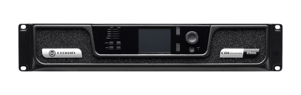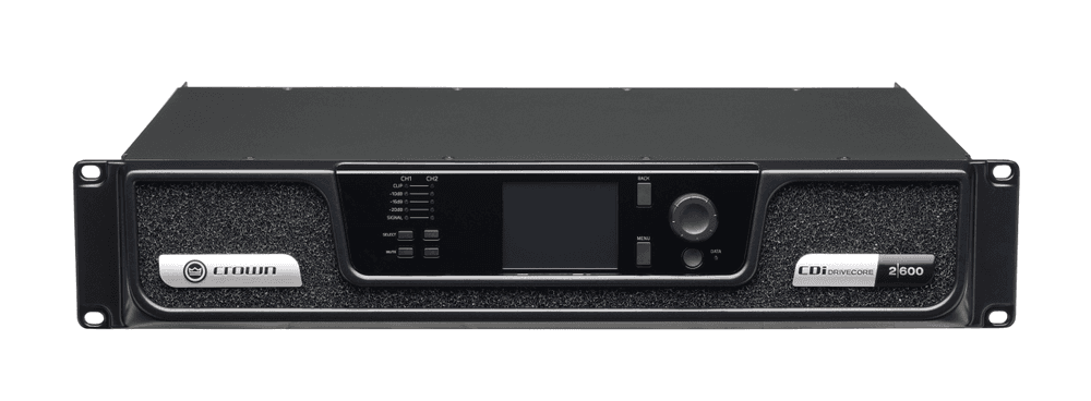 The CROWN CDi 2|600 is a dual-channel installation amplifier delivering 600W continuous per channel into 4Ω and capable of directly driving loads up to 100Vrms without the need for external transformers. Based on DriveCore™ technology, it features an advanced DSP with input router, 8-band parametric EQs, crossover and delays up to 1000ms input and 100ms output, plus the LevelMAX™ limiter suite to protect your loudspeakers. A front-end interface with LCD display and dedicated controls makes commissioning easy, while HiQnet™ over TCP/IP support enables remote monitoring and control of all functions.