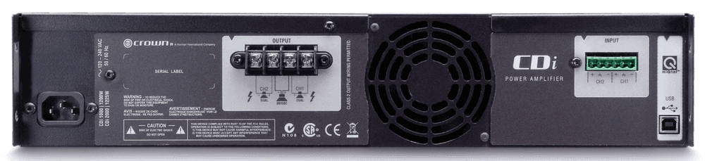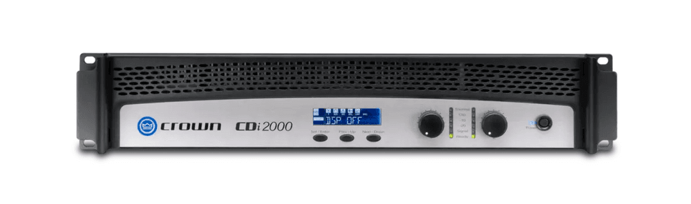 The CROWN CDi 2000 is a professional 2U rackmount amplifier delivering 800W per channel into 4Ω and supporting both 70V and 140V constant voltage systems without the need for external transformers. Based on the robust CDi Series, it features a universal switching power supply with active PFC for maximum energy efficiency and an integrated DSP with LevelMAX™ crossovers, EQs, delays, and limiters configurable from its intuitive front-facing LCD display or via HiQnet™ over TCP/IP for remote monitoring and control. Lightweight, reliable, and sounding faithful, the CDi 2000 is ideal for commercial, corporate, and hospitality environments where performance and ease of setup are required.