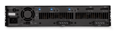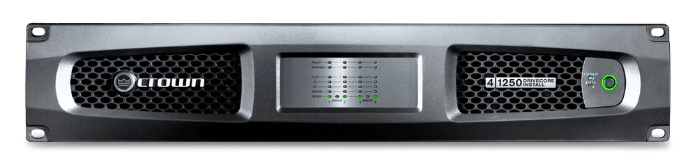 The CROWN DCi 4|1250 is a professional installation amplifier delivering four independent 1,250W channels into 4 Ω and the same power in constant voltage mode (70Vrms and 100Vrms) without the need for external transformers. Housed in a 2U chassis, it combines patented DriveCore™ technology with a high-performance universal power supply and variable speed forced cooling to maximize energy efficiency and minimize noise. With balanced analog inputs with priority switching, optional BLU-Link™ digital transport, and remote control via HiQnet™, it provides unmatched flexibility and reliability for fixed installation projects.