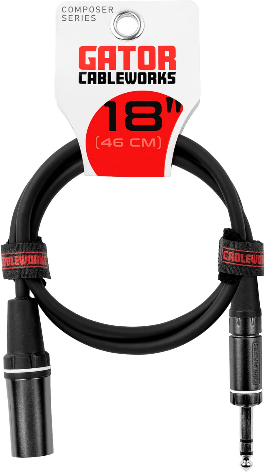 Gator Cableworks GCWC-XLR-18INMTRS - Cable XLR macho a jack TRS 6,35 mm (45 cm) · Patch balanceado Serie Composer