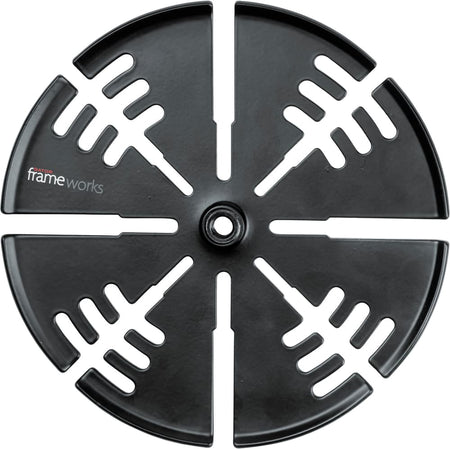 El Gator Frameworks GFW-CABLEHNGRTRAY es un organizador de cables para soporte de micrófono diseñado para mantener el cableado ordenado y accesible en estudios, escenarios y salas de ensayo. Su diseño colgante reduce el riesgo de daños por sobreenrollado y torsiones, mientras que las 32 ranuras con espacios alternos de 5 a 9 mm permiten acomodar cables de audio, instrumentación y datos de distinto diámetro. Se fija directamente a cualquier pie de micro estándar mediante rosca hembra 5/8"-27 y está fabricado en acero resistente con acabado de pintura en polvo para una larga durabilidad. Compacto y robusto, mide 197 × 197 × 6 mm y pesa 0,36 kg, con una capacidad de carga aproximada de 4,5 kg, suficiente para gestionar varios cables sin deformaciones.