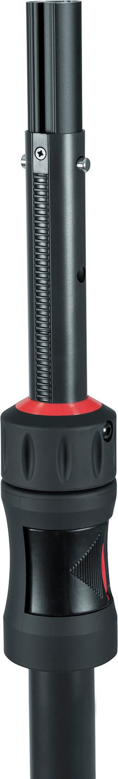 Tubo de unión para altavoz sobre subwoofer Gator Frameworks GFW-ID-SPKR-SP con pistón de asistencia LiftEEZ, bloqueo por leva, vástago de 35 mm, adaptador M20 incluido, rango de altura 960–1435 mm, capacidad recomendada 56,7 kg, peso aprox. 3 kg, dimensiones plegado aprox. 1055 × 80 × 80 mm, serie ID.