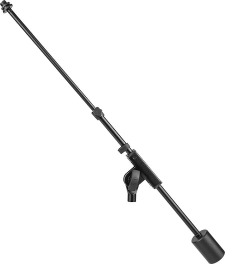 Brazo telescópico para micrófono con contrapeso integrado; alcance máximo 724 mm; longitud colapsada aprox. 508 mm; contrapeso 1,13 kg; capacidad de carga a máxima extensión 0,68 kg; rosca de acoplamiento 5/8"-27; compatible con clips US 5/8"-27 y EU 3/8"; gestión de cable incluida; uso recomendado con pies de sobremesa y perfil bajo; color negro.