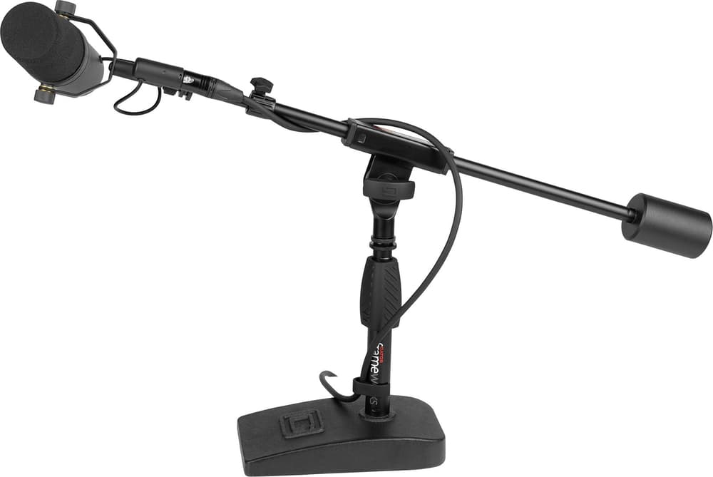 • Podcasting y streaming con micrófonos dinámicos o de condensador en base de sobremesa.