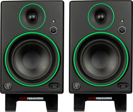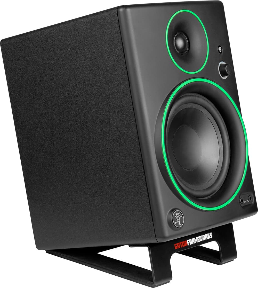 La pareja Gator Frameworks GFW-SPKSTMNDSK-WDG está diseñada para optimizar la escucha en escritorios y mesas de estudio. Su formato en cuña orienta el altavoz hacia los oídos para situarte en el sweet spot, mientras que el acolchado de espuma EVA ayuda a desacoplar vibraciones y protege la base del monitor de arañazos. La base antideslizante y el labio frontal de retención mantienen el altavoz estable incluso en superficies pulidas. Con una huella compacta y materiales resistentes, es una solución sencilla y efectiva para monitores de escritorio y de estudio de tamaño pequeño a mediano, así como altavoces de estantería.