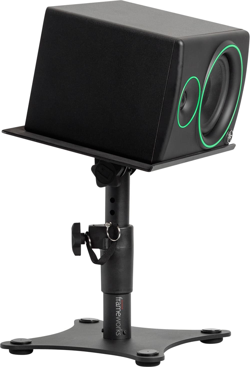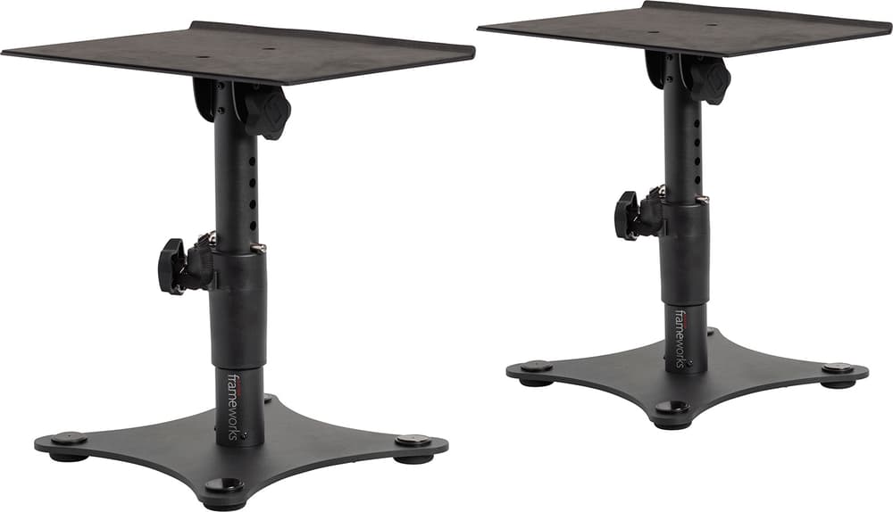 Gator Frameworks GFWSPKSTMNDSK - Soporte de monitor de estudio de sobremesa con base plana, altura e inclinación ajustables (par)