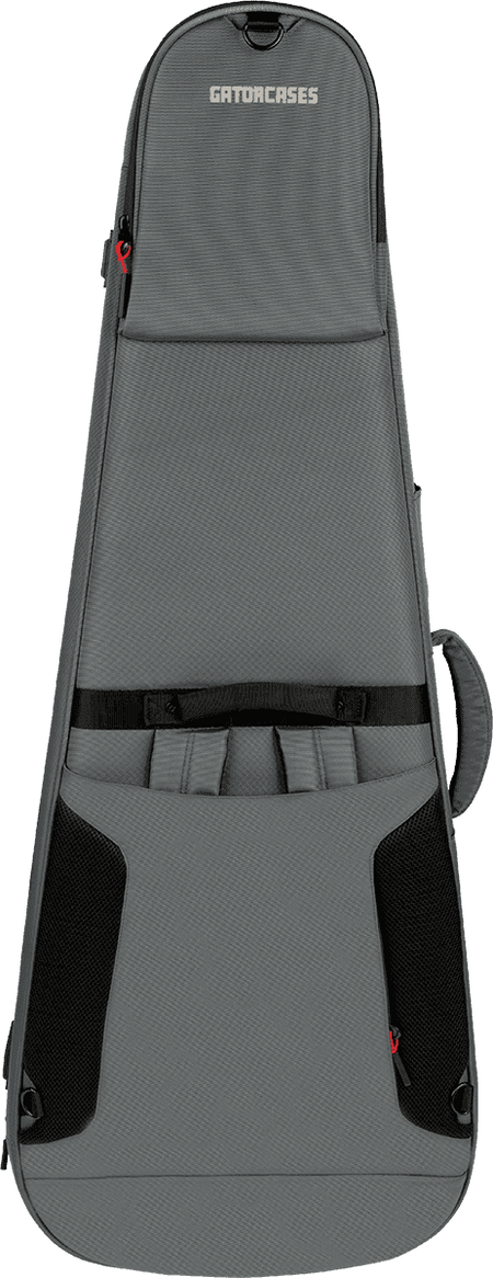 Para el transporte, la G-ICONDREAD-GRY dispone de correas tipo mochila ocultables con bolsillo de recogida y un abrebotellas integrado, así como varios asas acolchadas reforzadas situadas en el frontal, la parte trasera y el lateral que permiten cargar y mover la guitarra en distintas posiciones. Los parachoques de goma en la base y los laterales protegen la funda cuando se apoya en el suelo o contra paredes. Los tiradores del compartimento principal son compatibles con candados TSA, facilitando el viaje en avión. Como extra, incluye una funda de lluvia elegante con su propio bolsillo de almacenamiento para situaciones de clima especialmente adverso.