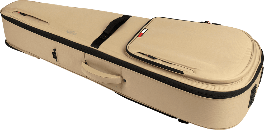 El diseño ICON está pensado para músicos en gira y usuarios exigentes: la funda integra capas de protección distribuidas en todo el contorno, con bloques de apoyo para cuerpo e interior y un bloque de soporte de mástil ajustable y desmontable con cierre de velcro, que abraza la guitarra y mantiene el mástil perfectamente estable durante el transporte. El interior de microterciopelo caqui protege el acabado de la guitarra frente a arañazos, mientras el chasis semirrígido absorbe golpes, vibraciones y pequeños impactos.