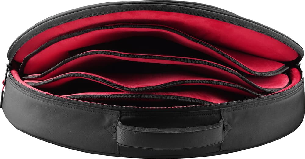 Su diseño de doble compartimento permite organizar el set de platos de forma segura y sin contacto metal con metal: el compartimento principal admite hasta 5 platos de hasta 22" con ayuda de 4 separadores acolchados de 22", mientras que el compartimento frontal está pensado para hasta 3 platos de hasta 16" (charles, crashes pequeños, splashes) utilizando 2 separadores acolchados de 16". De este modo, cada plato descansa sobre su propio “nido” de microterciopelo, evitando golpes entre ellos durante el transporte.