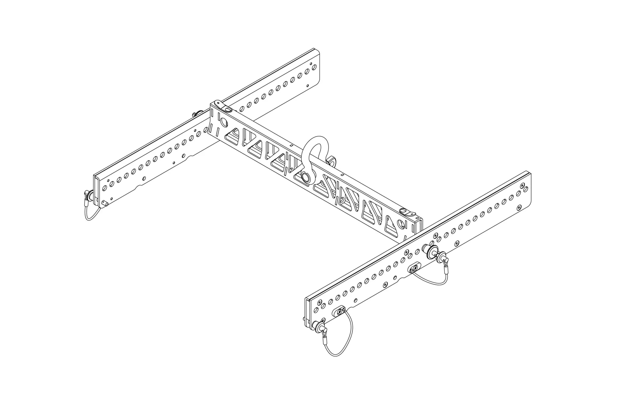 Constructed from high-grade steel with anti-corrosion coating and black powder coat finish , the VTX-A6-MF offers verified mechanical limits for arrays up to 24×A6 or 12×B15 (maximum limit) and 15×A6 or 11×B15 (safe limit), while maintaining a net weight of 5.3 kg and compact dimensions of 87 × 509 × 518 mm . It includes a 1/2″ (≈12.7 mm) shackle and is optimized for professional workflows with prior validation on JBL LAC-3 .