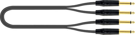 Cable de audio profesional de 2 metros de longitud. Configuración de conectores dual Jack Mono (TS) de 6.3 mm a dual Jack Mono (TS) de 6.3 mm. Conductores de cobre con una estructura de 20 x 0.12 mm y una sección de 0.22 mm². Cuenta con apantallamiento en espiral de cobre desnudo y una resistencia eléctrica inferior a 91 Ω/km. La capacitancia eléctrica es de 95 pF/m. El revestimiento exterior está fabricado en PVC de alta flexibilidad y durabilidad en color negro. Los pines de los conectores son bañados en oro.