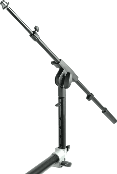 Extensión de micrófono telescópica para soporte de teclado, fabricada en acero con acabado en color negro. Peso de 1,10 kg. Altura ajustable entre 165 y 285 mm. Longitud de brazo (jirafa) extensible desde 570 hasta 1020 mm. Incorpora un sistema de fijación Grip-Lok/30 compatible con tubos de 30 mm de diámetro. Diseño plegable para facilitar su transporte.