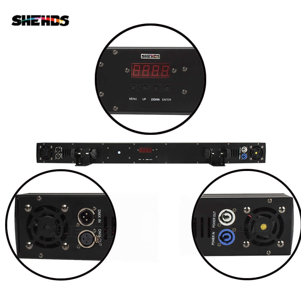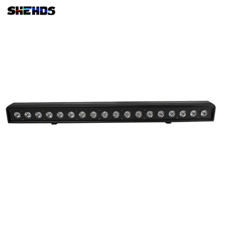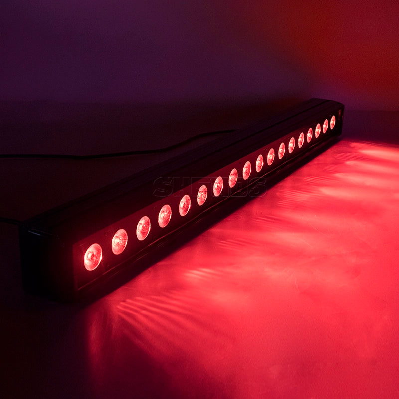 The SHEHDS PoWW1818F LED Wall Washer offers an ultra-slim, low-power profile (324 W) with 18 x 18 W LEDs in a 6-in-1 configuration (RGBWA+UV), designed for wall lighting, DJ bars, wedding stages, bars and clubs. Its universal input (AC 100–240 V) and DMX512 compatibility (up to 119 channels) allow precise control of color and effects. With a width of just 8.2 cm, it integrates an aluminum body with passive dissipation, ideal for fixed or mobile installations that require uniform surface washing.