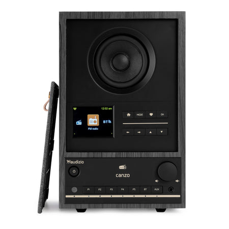 Discover the sonic universe offered by the Audizio Canzo digital music system. This multifunctional device has been designed for music lovers seeking quality, versatility, and a modern design. Equipped with a powerful 40W full-range speaker, the Canzo delivers a rich and clear audio experience, ideal for enjoying any musical genre. Its elegant dark gray finish and compact design make it the perfect addition to any room, whether it's the living room, kitchen, bedroom, or office.