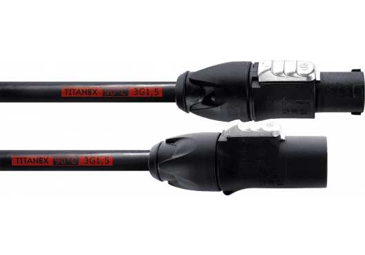 Construido en torno al resistente cable de goma Titanex® H07RN-F, este modelo está preparado para soportar las condiciones más adversas, incluyendo la exposición al aceite, a la intemperie y el estrés mecánico. Su diseño cumple con los más altos estándares de seguridad, asegurando un rendimiento excepcional tanto en interiores como en exteriores. Los conectores Neutrik powerCON TRUE1 proporcionan un sistema de conexión con bloqueo, evitando desconexiones accidentales, y cuentan con capacidad de interrupción (CBC), lo que permite conectarlos y desconectarlos de forma segura bajo carga eléctrica.