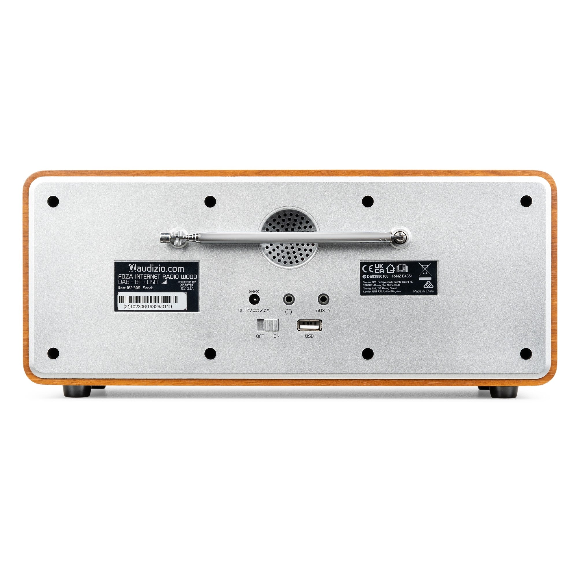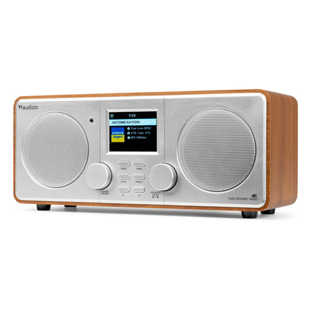 The Audizio Foza is a comprehensive audio solution that blends classic, elegant design with cutting-edge radio technology. Finished in a sophisticated wooden cabinet with a silver front panel, this stereo radio not only enhances your space but also fills it with high-quality sound and a world of audio content. Thanks to its integrated Wi-Fi module, you'll have access to over 32,000 radio stations worldwide, allowing you to discover music, news, and programs from every corner of the globe. If you prefer interference-free digital quality, its DAB+ tuner is ideal. And for your favorite local stations, it also features a traditional FM receiver.