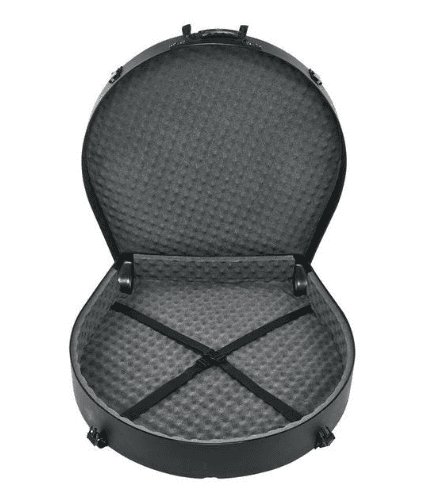Hardcase HN26G for gong/tam-tam 26" ; internal diameter approx. 29.5" (≈75.0 cm); internal depth approx. 5" (≈12.7 cm); full foam lining ; polyethylene shell ; integrated wheels ; pull handle and grab handle ; quick release clips ; stackable design with nameplate ; weight approx. 7.9 kg ; color black .