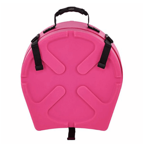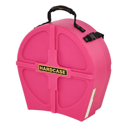 The Hardcase HNP14SP is the pink version of Hardcase’s classic 14” snare drum case . It combines a heavy-duty, watertight plastic shell with foam pads that support the hoop and shell to float the snare inside, reducing bumps and scrapes during transport. The Quick-Lock strap and clip closure system facilitates a secure fit, and the lid snaps onto the body for a secure seal (telescopic design). It includes a comfort handle , identification plate , and a stacking feature to optimize space in vans and warehouses. With an internal diameter of 439 mm , a snare rod cutout of 497 mm , a depth allowance of 150–203 mm , and a weight of approximately 2.9 kg , it is a robust, lightweight solution for touring, schools, and backline companies.