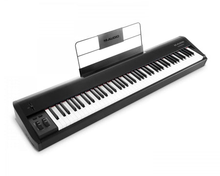 The M-Audio Hammer 88 Pro is a professional MIDI controller keyboard designed for pianists, producers, and composers seeking an authentic playing experience combined with complete control over their virtual instruments and DAWs. This full-size, 88-key controller features a graded hammer-action keyboard that accurately simulates the feel and response of an acoustic grand piano, providing an expressive platform for any musical style. The keyboard's high-speed scanning technology captures every nuance of the performance, while per-channel assignable aftertouch adds an extra level of expression and control over the sounds.