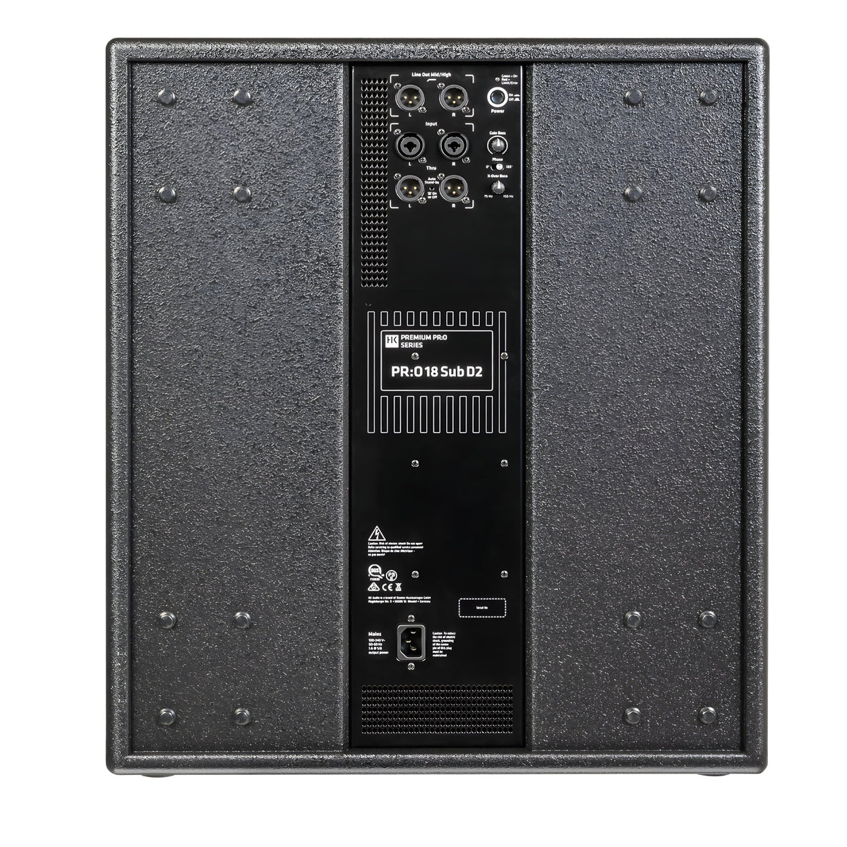 HK Audio PR:O 118 SUB D2 — 18" active subwoofer with integrated crossover (75–150 Hz) and 1,200 W peak