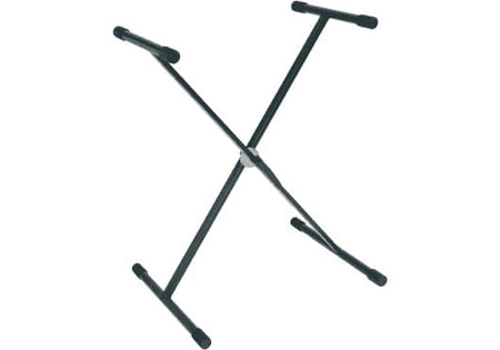 Soporte de teclado universal modelo RTX TRTRX en formato de tijera simple, fabricado en acero de alta resistencia con acabado en pintura epoxi negra. Incorpora sistema de regulación de altura multiposición mediante mecanismo de bloqueo rápido centralizado. Dispone de terminaciones en goma antideslizante tanto en la base como en los brazos de soporte para garantizar la estabilidad del equipo y la protección de superficies. Diseño totalmente plegable para facilitar el almacenamiento y transporte. Capacidad de carga optimizada para teclados estándar y pianos digitales ligeros.