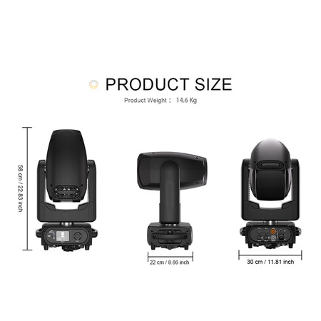 The SHEHDS GalaxyJet GALAXY300B 300W moving head combines three functions in a single unit: a concentrated beam (Beam), a color wash (Wash), and a gobo projection (Gobo). Designed for professional events such as concerts, theaters, weddings, clubs, and live shows, it features a high-power LED engine with a 9100–9400K color temperature, ensuring a sharp 2° beam and a homogeneous wash of up to 22°.