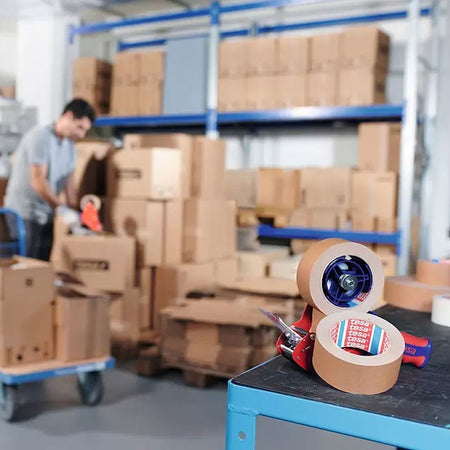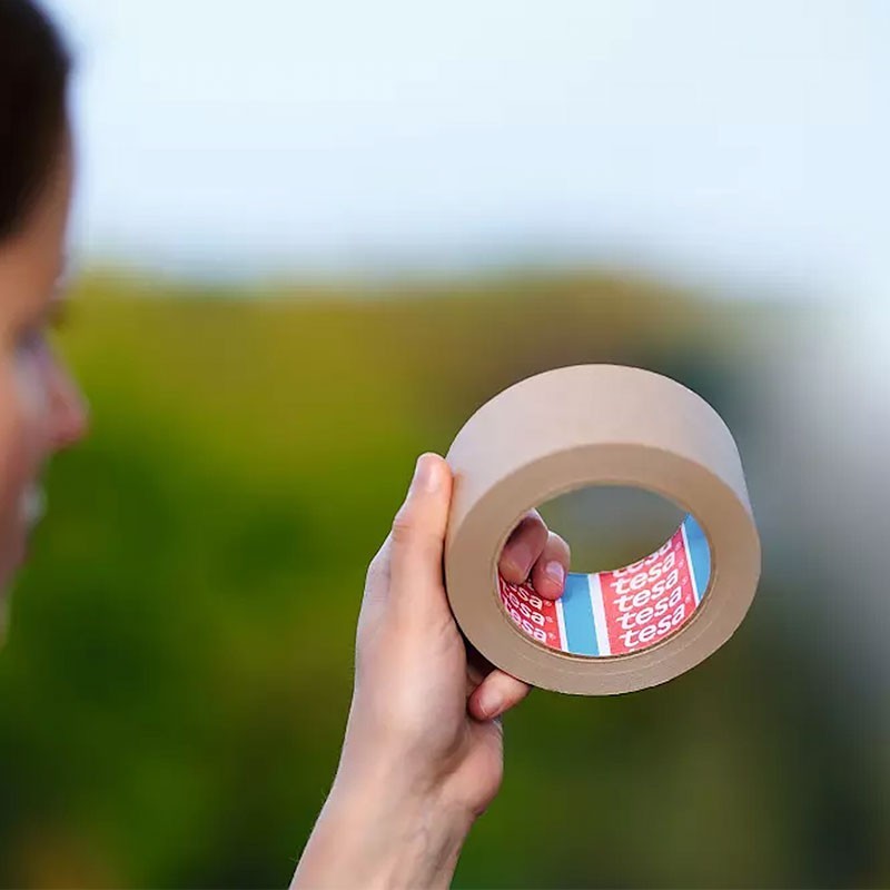 Brown eco-friendly paper adhesive tape. 50m x 5cm roll. Tesa 4713