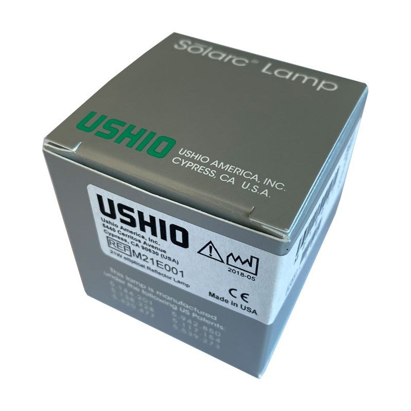 - USHIO M21E001 SOLARC lamps offer a three-fold increase in efficiency over comparable halogen sources. Whether it's more intense light driven by an equivalent amount of wattage or equivalent light output that lasts three times longer.