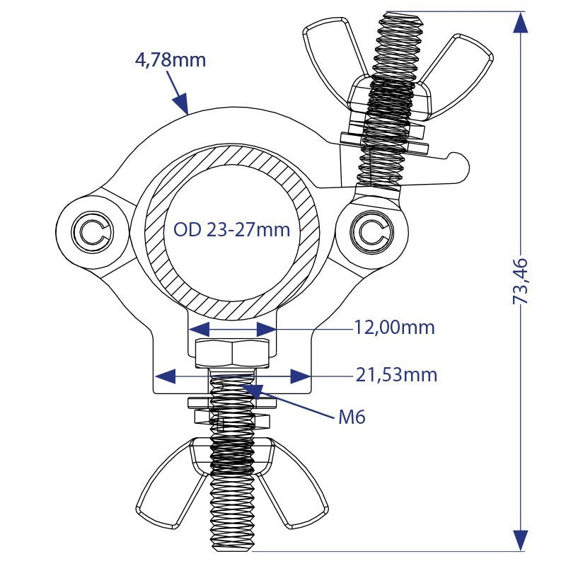Triton Blue Abrazadera de Aluminio 23-27 mm para Truss - Carga 60 kg