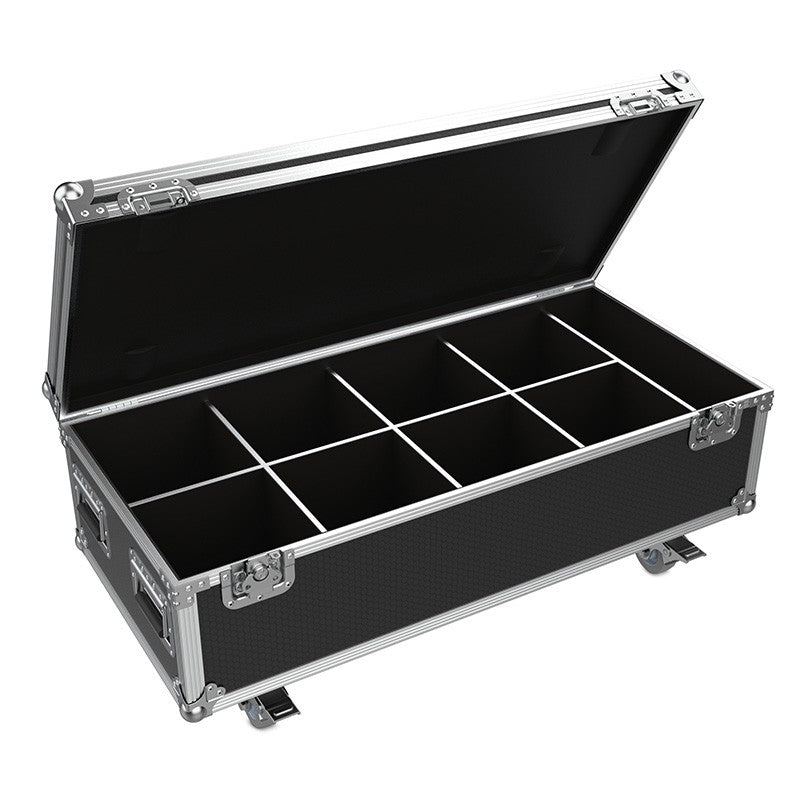 - Flightcase diseñado para transportar con seguridad 8 proyectores LED serie Aqua