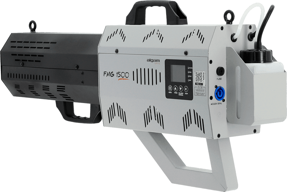 La Algam Lighting FMG 1500 transforma al DJ o animador en el protagonista visual del show. A diferencia de las máquinas de suelo que funcionan en segundo plano, este cañón permite puntualizar los "drops" musicales o momentos cumbre de una canción con una explosión visual y sonora. Su peso equilibrado de 6,7 kg facilita su manejo durante las actuaciones sin causar fatiga excesiva, y su construcción sólida asegura resistencia en entornos exigentes como cabinas de DJ o escenarios al aire libre.