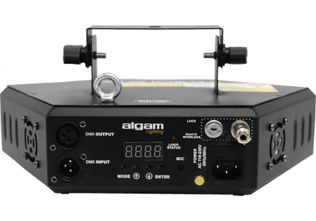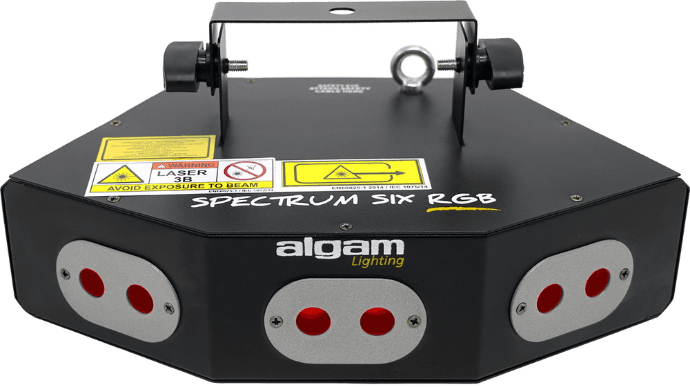 El Algam SPECTRUM SIX RGB es un sistema de haz de luz láser de 260 mW que combina cuatro diodos láser (2 rojos, 1 verde, 1 azul) en un chasis compacto y ligero. Con modos automáticos, sonoro y DMX de 8 canales, ofrece una amplia paleta de colores y efectos estroboscópicos, ideal para discotecas, bares, pequeños eventos y ambientes corporativos que requieren iluminación láser sincronizada con la música.