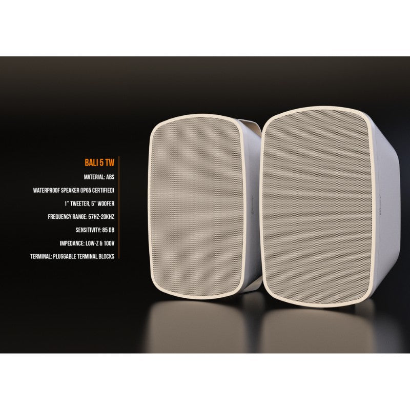 Audibax Pro Bali 5 TW - Altavoces pasivos de exterior IP65 de 5″ para pared (pareja, color blanco) con taps 100V/70V y modo 8 Ω