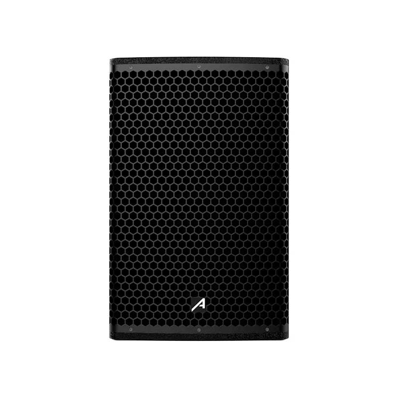 Altavoz activo 2 vías; LF 10″ (VC 2,5″) + HF 1,75″ en bocina (VC 4,5″); 50 Hz–20 kHz; 95 dB (1 W/1 m); 134 dB SPL máx.; dispersión 90° × 60°; DSP CAN BUS; 1× entrada Mic/Line XLR/Jack, 1× salida XLR; 1000 W RMS / 2000 W pico; recinto madera multicapa con cobertura de poliurea; 320 × 320 × 515 mm; 17,5 kg; alimentación AC 220–240 V, 50 Hz.