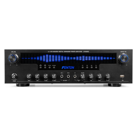 El Audizio AV560EQ es un versátil y potente amplificador de 5.1 canales diseñado para convertirse en el centro neurálgico de su sistema de entretenimiento doméstico. Capaz de entregar una potencia máxima total de 390W, este equipo transforma la experiencia de ver películas, disfrutar de videojuegos o escuchar música, proporcionando un sonido envolvente de alta fidelidad que llena cualquier estancia. Su diseño elegante en color negro, junto con una gran pantalla gráfica iluminada en azul con 9 modos de visualización y controles de volumen retroiluminados, le confiere una estética moderna y profesional.