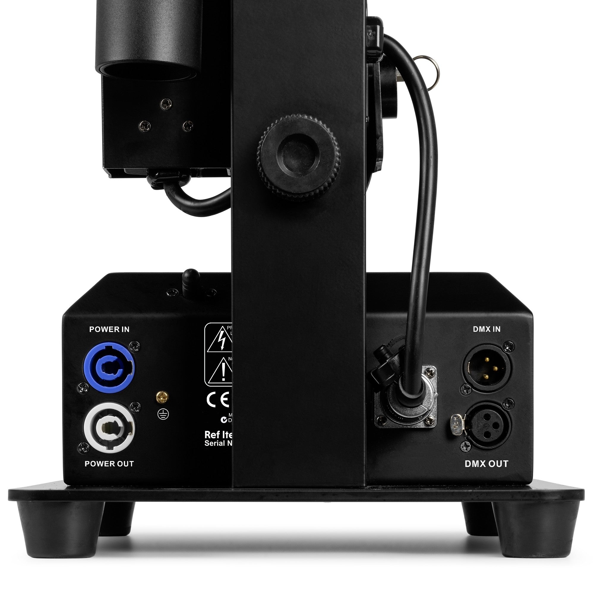 • Operación profesional: perfiles DMX 4/8 ch, modo por sonido, estrobo y control local por LCD.