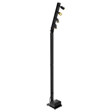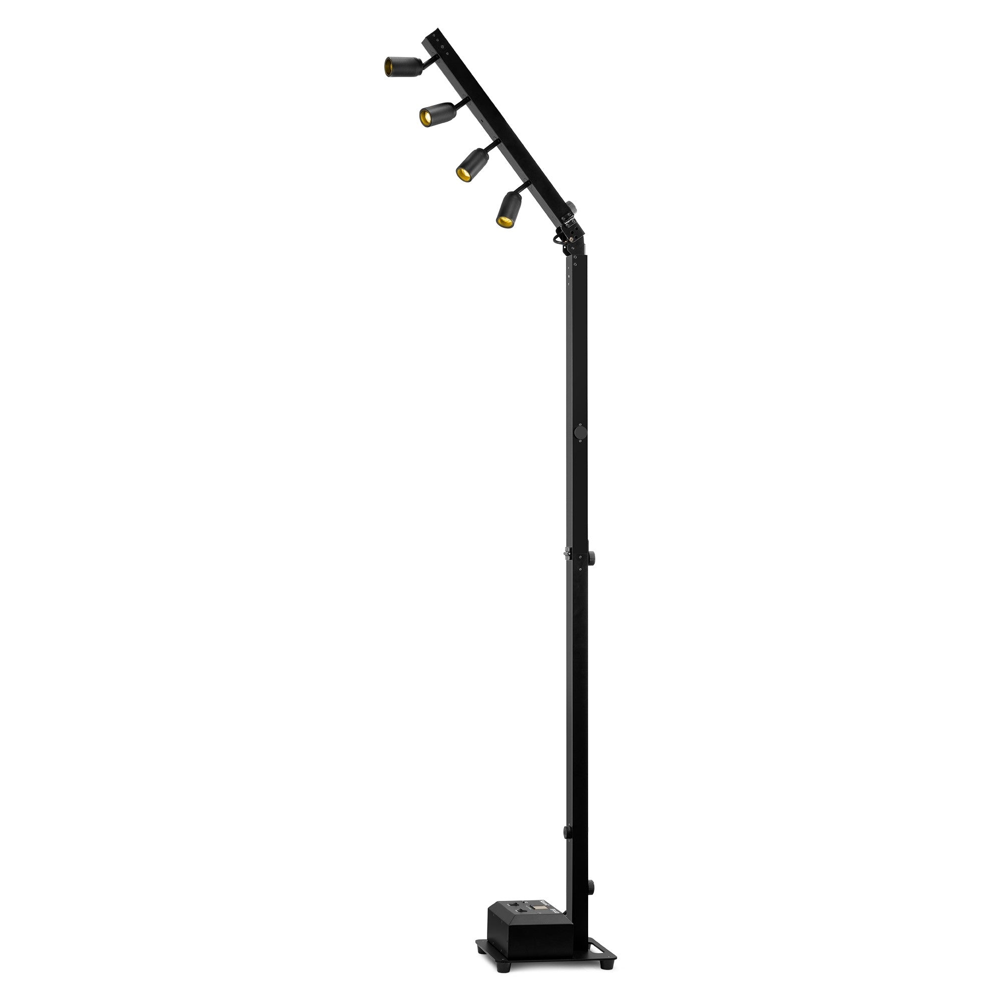 La beamZ BPL410 es una luz de mástil autónoma y elegante pensada para iluminación decorativa en banquetes, mostradores de presentación, recepciones, museos y todo tipo de eventos en interior. Incorpora 4 focos warm white de 10 W (2.700 K) con zoom manual 4°–45° y cabezales orientables, de modo que puedes concentrar el haz para acentos muy definidos o abrirlo para un baño suave. Su batería de iones de litio (11,1 V / 25 Ah) ofrece hasta 20 horas de autonomía y se recarga por completo en unas 6 horas. El conjunto se asienta sobre una base robusta con peso extra para máxima estabilidad incluso a su altura total, e incluye montaje/desmontaje sin herramientas para agilizar la logística.
