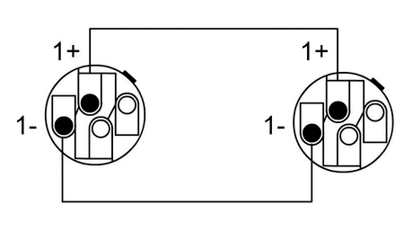 El conector es físicamente un Speakon de 4 polos (formato NL4), pero está cableado internamente para una conexión de 2 polos (+1/-1), que es el estándar más común para la mayoría de altavoces y amplificadores.