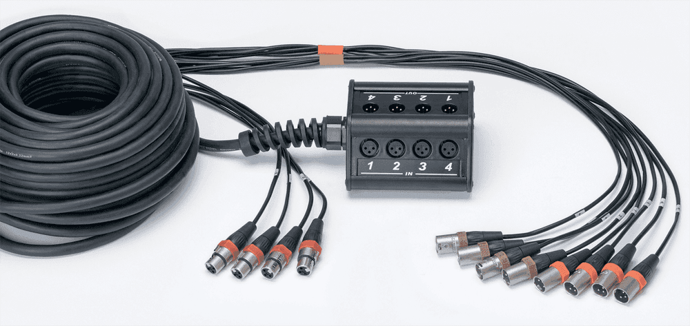 Utiliza conectores REAN, que es una marca propiedad de Neutrik. Los conectores de entrada en la caja son XLR hembra de 3 pines y los de salida son XLR macho de 3 pines. Los conectores en el extremo del cable (fanout) son la contraparte correspondiente.