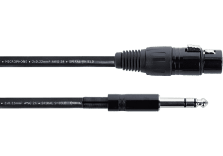 Cable adaptador de audio de 50 cm de longitud. Dispone de un conector XLR hembra de 3 pines a un conector Jack TRS (estéreo/balanceado) macho de 6,35 mm. El cable presenta un apantallamiento eficaz para la protección contra interferencias electromagnéticas. Los conectores son metálicos y robustos para garantizar una alta durabilidad. La cubierta exterior del cable es de PVC flexible.