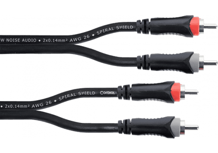 Cable de audio estéreo no balanceado de 1,5 metros de longitud. Configuración de doble RCA macho a doble RCA macho. Utiliza conectores metálicos REAN by NEUTRIK con código de color rojo/negro. El cable cuenta con un área de conductor de 0.22 mm² (AWG 24), una composición de 28x0.10 mm, blindaje en espiral y una cubierta exterior de PVC. La capacitancia es de 80 pF/m y la resistencia del conductor es de 80 Ohm/km.