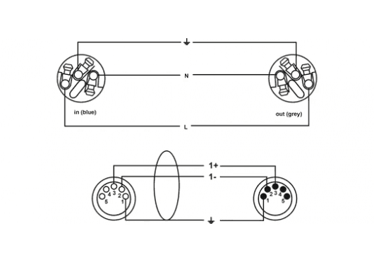 La sección de alimentación cuenta con conductores de cobre de 3x2.5 mm², lo que garantiza una entrega de corriente estable y segura para equipos de alto consumo. Está terminado con conectores Neutrik powerCON TRUE1 (NAC3FX-W y NAC3MX-W), reconocidos por su robustez y, fundamentalmente, por su capacidad de ser conectados y desconectados de forma segura bajo carga eléctrica (hasta 16A a 250V), una característica crucial para la flexibilidad operativa en entornos dinámicos. Por su parte, la línea de señal DMX utiliza un cable balanceado con una impedancia de 110 ohmios, ideal para la transmisión de datos AES/EBU y DMX512 sin interferencias, incluso en largas distancias. Los conectores son los fiables Neutrik XLR de 5 pines (serie XX), estándar en la industria de la iluminación profesional.