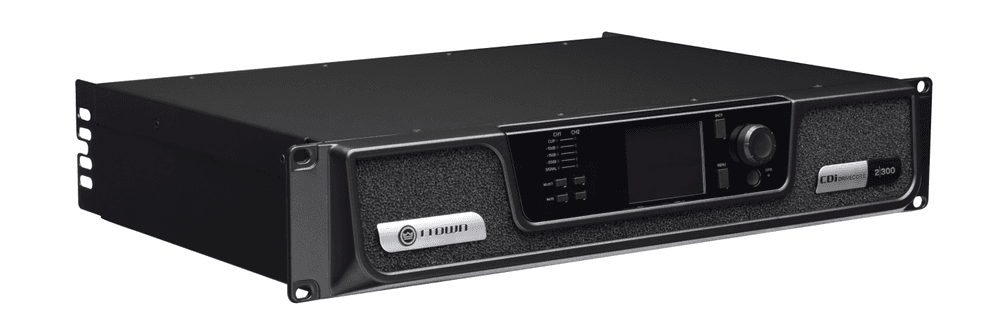 El CROWN CDi 2|300 es un amplificador de instalación de dos canales basado en la tecnología DriveCore™, que entrega 300 W continuos por canal a 4 Ω y es capaz de alimentar directamente cargas de hasta 100 Vrms sin necesidad de transformadores externos. Incorpora un DSP de alto nivel con enrutador de entrada, retardos de hasta 1000 ms en entrada y 100 ms en salida, ecualizadores paramétricos de 8 bandas en entrada y salida, crossover y la suite de limitadores LevelMAX™ para proteger los altavoces. Su interfaz frontal con pantalla LCD y botones dedicados facilita la puesta en marcha, y la monitorización y el control remoto se realizan a través de HiQnet™ sobre TCP/IP. Ideal para pequeñas y medianas instalaciones, como restaurantes, tiendas o salas de culto, con presets JBL preconfigurados para acelerar la configuración.